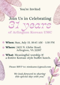 창립 31주년 기념예배 초대