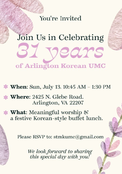창립 31주년 기념예배 초대
